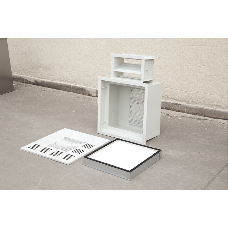 Статикалық қысым қорабы төмен көміртекті болаттан жасалған материалдан жасалған және жоғары тиімді сүзгі мен статикалық қысым қорабы тұтас біріктірілген. Қытай өндірушілері мен жеткізушілерінің Jinda HEPA сүзгі қорабы статикалық қысым қорабының ауа кірісінде конфигурацияланған. Реттеуші клапан ауа берудің біркелкілігін және статикалық қысым әсерін реттейді. Бұл жеңіл және қауіпсіз.